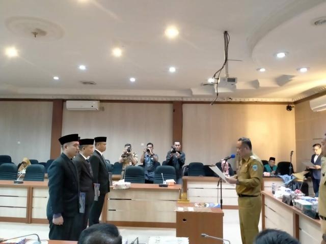 Adapun pejabat administrator yang melaksanakan pelantikan dan melakukan sumpah jabatan, Dedi Supriadi SE, MM jabatan Kepala Bagian Kesejahteraan Rakyat (Kabag Kesra)